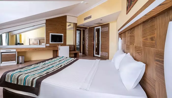 - اتاق خانوادگی یا Family room: مساحت ۴۴ متر مربع - بالکن - تلویزیون - مینی بار - حمام به همراه دوش و سرویس بهداشتی - اینترنت وای فای - صندوق امانات - مجهز به یک تخت ۲ نفره و ۲ تخت ۱ نفره - نظافت روزانه اتاق - تخت نوزاد و وان حمام کودکان در صورت نیاز - شارژ مینی بار به صورت روزانه - کتری برقی به همراه چای و قهوه و شارژ روزانه - تهویه هوا