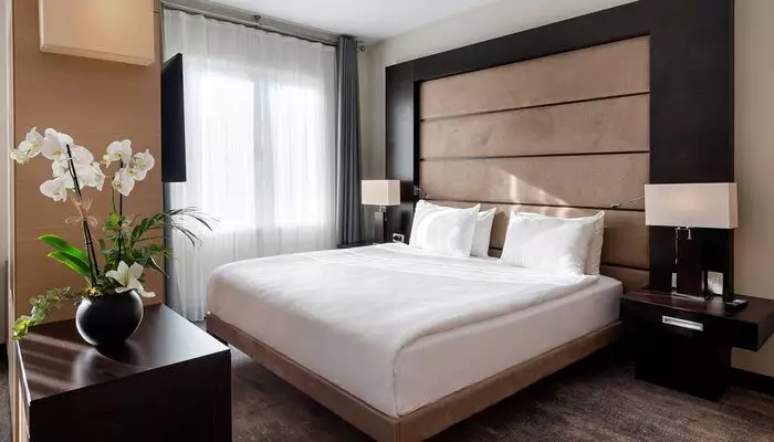 - سوئیت جونیور: 50 متر مربع، سوئیت اختصاصی، یک اتاق نشیمن، یک اتاق خواب با یک تخت دونفره و یک مبل تختخوابشو، چشمانداز شهری