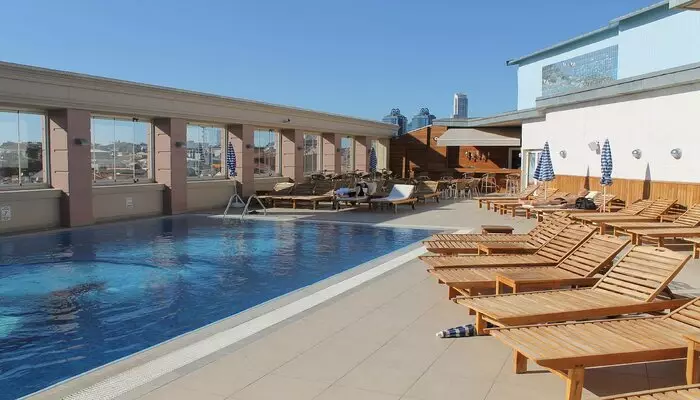 مهماننوازی واقعی را در هتل رامادا پلازا سیتی سنتر استانبول (Ramada Plaza by Wyndham Istanbul City Center) تجربه میکنید! کارکنان مهربانی که دغدغهشان راحتی مهمانان هتل است، امکاناتی که هر کدام برای آسوده بودن مهمانان در دوران اقامتشان تدارک دیده شدهاند و از همه مهمتر موقعیت مکانیای در قلب شهر ترکیه، همه و همه دست به دست هم دادهاند تا اقامتی لذتبخش را برای شما رقم بزنند. این هتل به میدان تکسیم بسیار نزدیک است و با نزدیکترین ایستگاه مترو به نام عثمانبی، 350 متر فاصله دارد. کسانی که برای تجارت به استانبول آمدهاند، خیالشان راحت باشد؛ زیرا هتل رامادا پلازا سیتی سنتر به مرکز همایش و نمایشگاه بینالمللی شهر بسیار نزدیک است. اتاقهای هتل به امکاناتی مثل تلویزیون هوشمند، وایفای رایگان و صندوق امانات مجهز هستند و حتی در بعضی از این اتاقها، استعمال دخانیات مجاز است. مهمانان میتوانند در باشگاه بدنسازی هتل ورزش کنند، به استخر روباز با سقف تلسکوپی بروند یا به مرکز اسپا قدم بگذارند و از تجربه حمام ترکی، سونا و اتاق بخار لذت ببرند. خودپرداز، آرایشگاه، پارکینگ پولی و یک فروشگاه برای راحتی شما در داخل هتل قرار دارد. در تنها رستوران هتل به نام پانکالدی، غذاهای محلی و بینالمللی را امتحان کنید و رو به منظره یکی از بخشهای قدیمی شهر استانبول به نام پنگالتی در محله شیشلی، غذای خود را صرف کنید. فقط توجه داشته باشید که این هتل مخصوص بزرگسالان است و کودکان حق ورود به آن را ندارند. اگر همراه با خانواده سفر میکنید، این مورد را حتماً مد نظر داشته باشید.