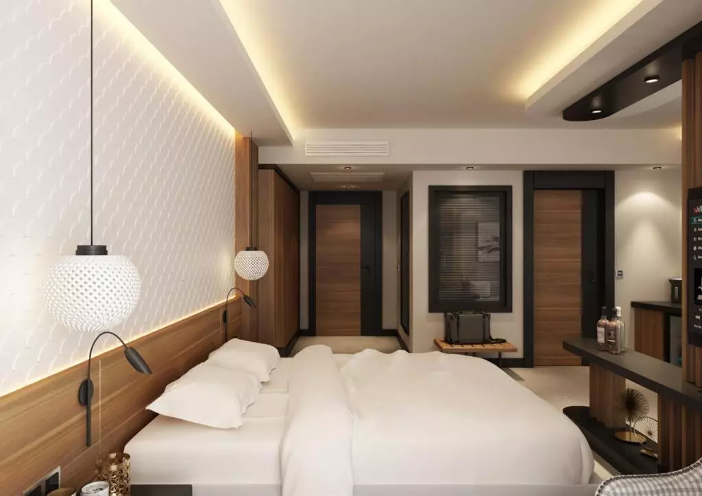 انواع اتاق در این هتل عبارتند از اتاق پرومو، اتاق دولوکس، سوئيت کینگ، سوئیت جونیور. همه اتاق ها به طور مرتب نظافت می شوند و همگی دارای بالکن بوده و چشم انداز بی نظیری رو به دریا دارند. مطمئن باشید با اقامت در این هتل یکی از به یاد ماندنی ترین سفرهایتان را تجربه خواهید کرد. برای دسترسی به اتاق های این هتل می توانید سوار آسانسور شوید. در داخل اتاق های هتل امکاناتی نظیر سیستم تهویه مطبوع هوا، تلویزیون، کمدلباس، گاوصندوق، سیستم گرمایشی و سرمایشی وجود دارند. علاوه بر اینها، در داخل اتاق های هتل SIGNATURE BLUE RESORT KUSADASI حمام اختصاصی وجود دارد و این حمام ها نیز شامل دوش، وان، لوازم بهداشتی، توالت فرنگی و حوله و سشوار هستند.