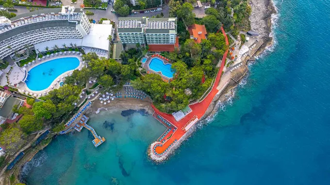 هتل از مکانی عالی برخوردار است که به منظره شنی ، خلیج اینسکوم ، 24 کیلومتری استراحتگاه محبوب آلانیا و چند صد متر از ساحل فاصله دارد. نزدیکترین مرکز خرید در Avsallar است که در 3 کیلومتری آن واقع شده است. میهمانان می توانند از فرودگاه آنتالیا که در حدود 105 کیلومتری هتل واقع شده است به هتل برسند. این هتل کاملاً تاسیس شده و به سبک کلاسیک مبله شده و دارای استخر روباز ، رستورانی با صندلی داخلی و خارجی ، لابی و استخر می باشد. امکانات فضای باز در یک باغ جذاب با درختان احاطه شده است و هتل ساحل صخره ای خود را دارد. امکان استفاده از امکانات هتل خواهر همسایه که شامل آرایشگاه و مرکز آبگرم و زیبایی می باشد (هزینه قابل پرداخت است) وجود دارد. علاوه بر این ، در لابی هتل دسترسی به اینترنت رایگان وجود دارد. هتل دارای تهویه مطبوع است و دارای یک پذیرش 24 ساعته است که خدمات خروج 24 ساعته را ارائه می دهد. صندوق امانات هتل برای نگهداری اشیا باارزش فراهم شده و امکانات تبادل ارز در دسترس است. دسترسی به آسانسور نیز همانند سالن تلویزیون و خدمات خشکشویی نیز ارائه می شود که هزینه خدمات اضافی با هزینه اضافی تحقق می یابد. اتاق های دنج دارای کف موکت و مجهز به تهویه هوا ، تلویزیون ماهواره ای و دارای دو تخت فرانسوی یا دوقلو هستند. اتاق ها به دوش حمام و سشوار اختصاص داده شده اند ، تلفن نیز به عنوان صندوق امانات و مینی بار ارائه می شود. میهمانان می توانند از سرویس اتو محل اقامت خود استفاده کنند. ویژگی های تهویه مطبوع و گرمایش بصورت جداگانه بصورت استاندارد در اتاق ها وجود دارد. مهمانان می توانند در بالکن یا تراس اتاق خود استراحت کنند.