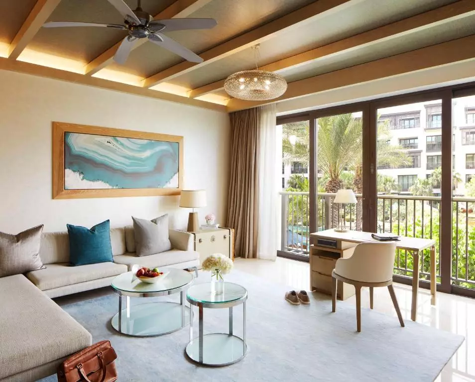 - سوئیت هتل: 135 متر مربع، با بالکن بیست متری، یک اتاق خواب با تخت دونفره، اتاق نشیمن بزرگ، اتاق ناهارخوری، هاتتاب ، تخت ماساژ اختصاصی، چشمانداز باغهای هتل یا دریای خلیج فارس یا آسمانخراشهای دبی، حملونقل رایگان به فرودگاه بینالمللی دبی، دسترسی به سالن لانژ و کلاب هتل