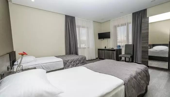 اتاق ها- اتاق اقتصادی (اکونومی): 22 متر مربع، رو به حیاط هتل، همراه با تراس، یک تخت دونفره یا دو تخت تکنفره