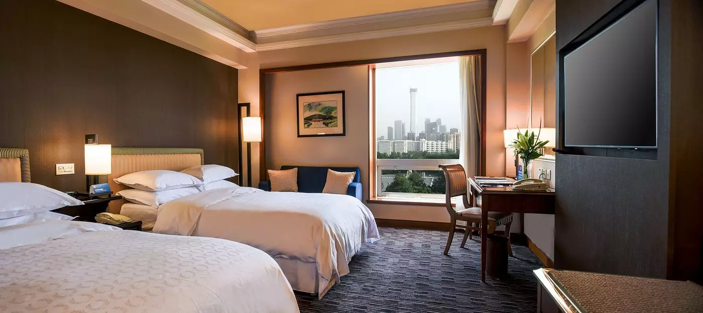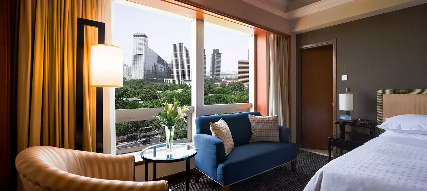 چشمانداز اتاقها را مناظر زیبایی از شهر پکن، جاذبهها و آسمان خراشهای نفسگیر تشکیل میدهد. از پنجرههای تمامقد اتاقها روشنایی عالی و مناظر پانورامیک تماشایی به داخل اتاقها ارائه میشوند. دکوراسیون اتاقها بسیار شیک، لوکس و مدرن است و از ترکیب رنگهای بسیار جذاب و هماهنگ در چیدمان و طراحی اتاقها استفاده شده است. فضای اتاقها وسیع، دنج و دلباز است. اسباب و لوازم باکیفیت و مرغوب در چیدمان اتاقها به کار گرفته شدهاند و کف اتاقها با موکت پوشش یافته است. نظافت و تمیزی اتاقها قابلاطمینان است. مهمانان در این اتاقها که هرکدام به گونه و سبکی منحصربهفرد طراحی شدهاند، خود را همچون در خانه خودشان احساس میکنند. اتاقهای هتل همه عایق صدا هستند و هیچ صدای خارجی مزاحم آرامش مهمانان نمیگردد و هیچ صدایی از داخل به بیرون اتاقها نمیرسد. مهمانان توجه داشته باشند استعمال سیگار داخل اتاقها اکیداً ممنوع است. زمان تحویل اتاقها در این هتل ساعت ۱۵ و زمان تخلیه اتاقها از ساعت ۶ صبح ۱۲ ظهر ست.