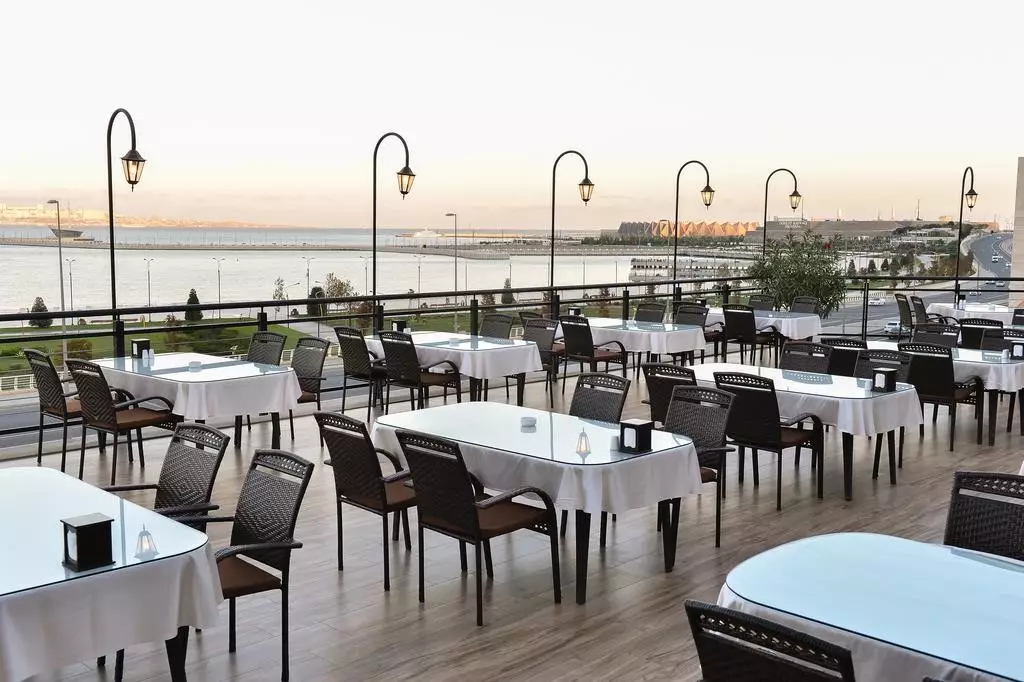 غذاهای آذربایجانی و اروپایی در رستوران Riviera با دکوراسیون چوبی زیبا سرو می شود. منو شامل غذاهای دریایی ، استیک و پیتزا است. کافه دارای تراس مشرف به تفرجگاه Mikayil Huseynov است. همچنین میوه ها ، شراب ، شامپاین ، اسنک بار ، صبحانه در اتاق و نهار بسته بندی شده در صورت درخواست موجود میباشد.
