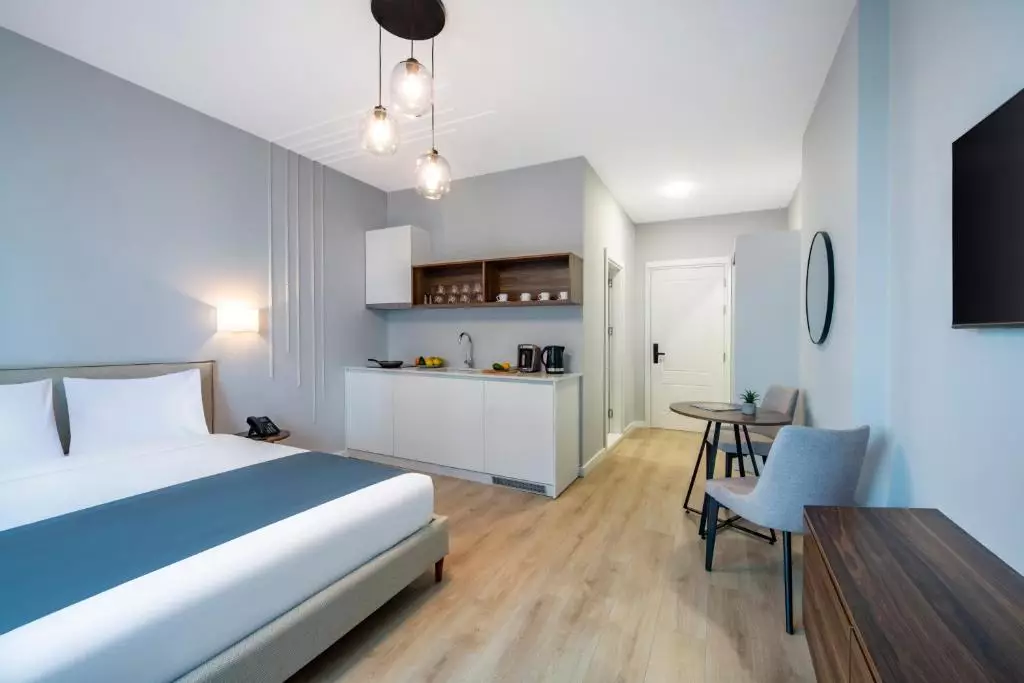 انواع اتاقهای موجود در این هتل عبارتاند از استودیو با چشمانداز دریا، آپارتمان یک خوابه، آپارتمان دو خوابه، استودیو استاندارد تریپل، استودیو سوپرییر، آپارتمان سوپرییر. در اتاقهای این مجموعه اجازه استعمال سیگار به مسافران داده نمیشود و برای افراد سیگاری محل مشخصی در نظر گرفته شده است. در هریک از اتاقها بالکن تعبیه شده است و در هر اتاق میتوانید از امکاناتی نظیر سیستم تهویه مطبوع هوا، تلویزیون، حمام اختصاصی، کاناپه، اتوکشی، ماشین ظرفشویی مجهز بهرهمند شوید. از پنجره اتاقهای هتل Steps Batumi Hotel & Suites نیز میتوانید چشمانداز زیبایی از شهر را تماشا کنید. در آشپزخانه موجود در هریک از آپارتمانها میتوانید از خدماتی نظیر یخچال، کتری برقی، اجاق گاز و میز غذاخوری استفاده کنید. اتاقها دارای دیوارها و پنجرههای عایق صدا هستند و اقامتی همراه با آرامش را میتوانید تجربه کنید.